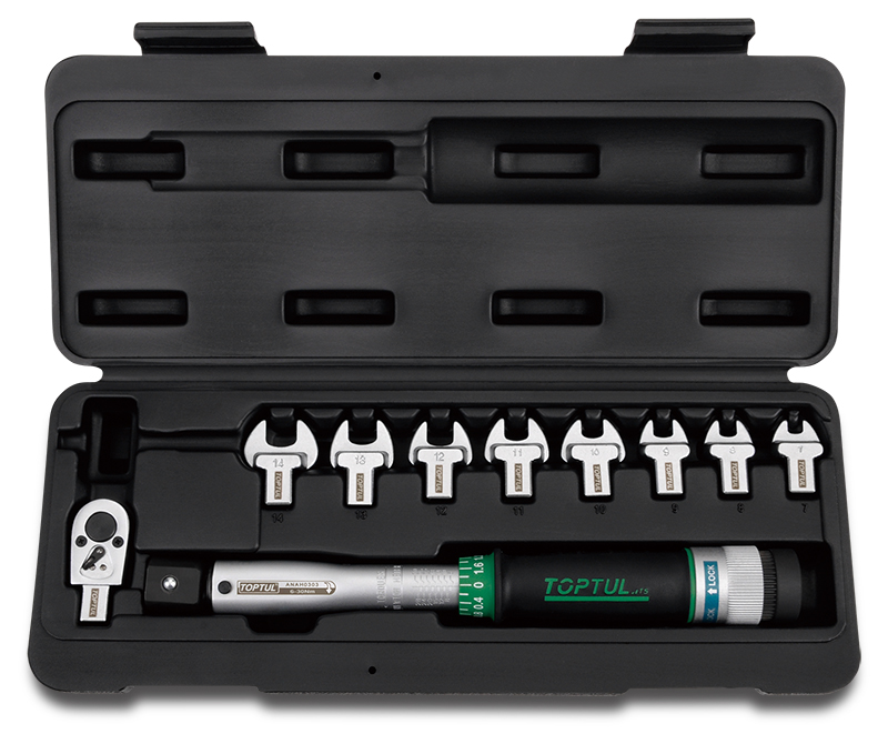 Ключ динамометрический 9x12мм 6-30 Нм с рожковыми насадками 7-14 мм 10 предметов TOPTUL GAAI1001 купить в Курске и других городах России