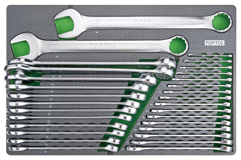 Набор комбинированных ключей 6-38 мм, 30 предметов в мягком ложементе (D) TOPTUL