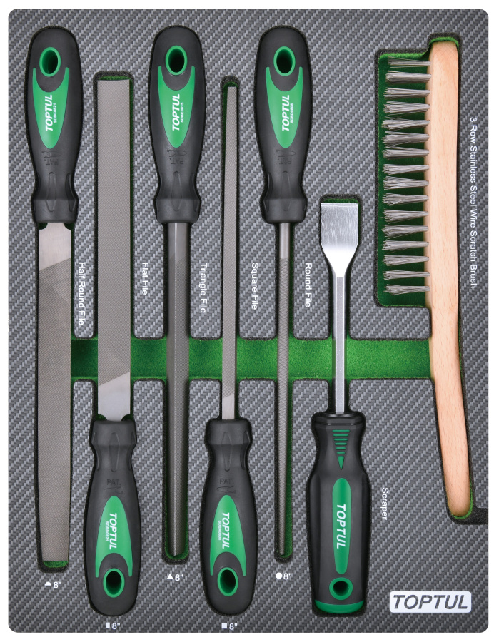 Набор инструментов, напильники, шабер и щетка, 7 пр. в мягком ложементе TOPTUL GEB0705 купить в Курске и других городах России