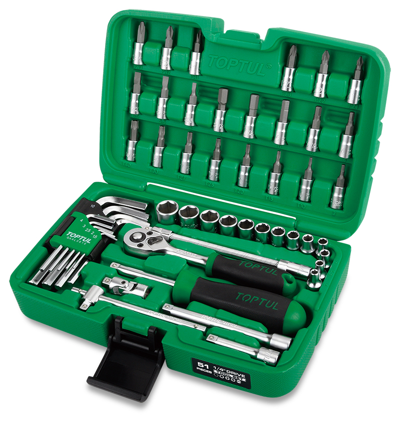 Набор головок и аксессуаров 1/4" 6-гранных 4-14 мм, 51 предмет TOPTUL.