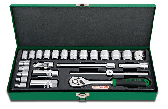Набор головок и аксессуаров 3/8" 12-гранных 6-24 мм, 25 предметов в метал. кейсе TOPTUL GCAD2504 купить в Курске и других городах России