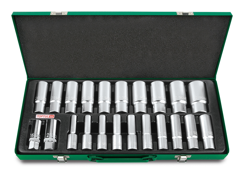 Набор головок удлиненных 1/2" 6-гранных 8-32 мм, 22 предмета в метал. ящике TOPTUL купить в Курске и других городах России