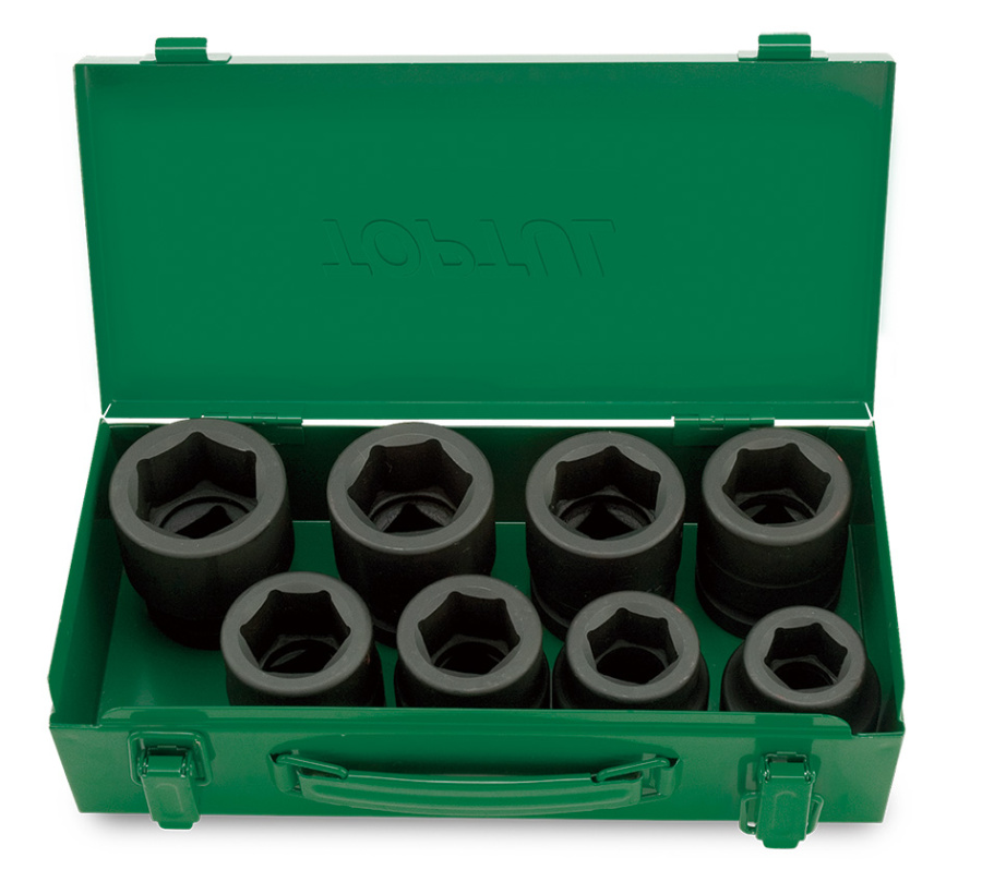 Набор ударных головок 1" 24-41 мм в металлическом ящике, 8 предметов TOPTUL